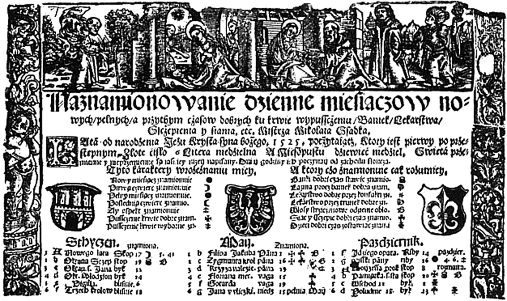 Pierwsze kalendarze, jakie ukazały się w Polsce, były autorstwa przybyłych z zachodu duchownych katolickich i wydawano je w języku łacińskim, gdyż stworzone były na potrzeby księży. Głównym ośrodkiem wydawniczym był Kraków i kalendarze zawierały wykaz dni całego roku wraz ze świętym patronem dnia. Kalendarze krakowskie cieszyły się tak dużą popularnością, iż na początku XVI wieku, w Wiedniu i Heidelbergu wydawano kalendarze pod tytułem „Practica Cracoviensis”. Sami Polacy wydawali je także w Rzymie i Lipsku. Ich wydawanie stało się na tyle dochodowym interesem, że wielu drukarzy starało sie o przywilej ich wydawania u króla.